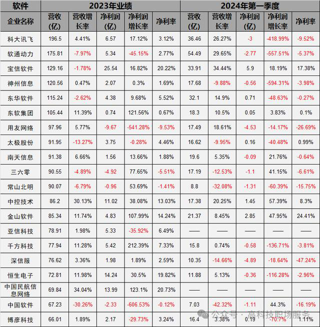 從2024年一季度的業(yè)績(jī)來(lái)看,共有11家企業(yè)出現(xiàn)了虧損,不算港股企業(yè)占比61.1%。從業(yè)績(jī)來(lái)看,科大訊飛、軟通動(dòng)力、神州信息凈利潤(rùn)下滑幅度大,占比在500%左右。