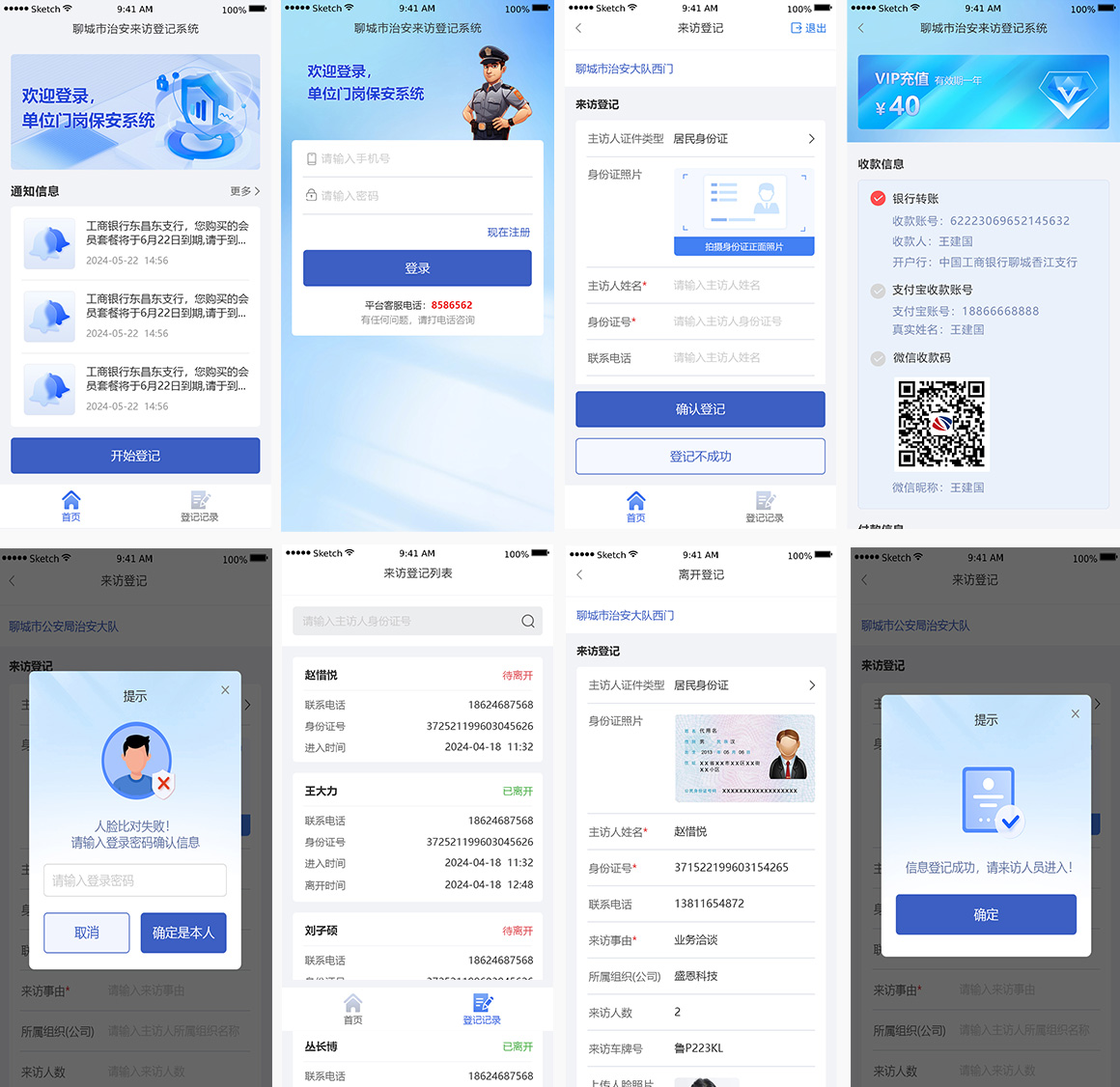 本系統(tǒng)可為政府、事業(yè)單位、企業(yè)訪客來訪進行登記、簽離等,上傳身份證自動識別身份信息。還可為加油站散油銷購、煙花爆竹經(jīng)銷商銷售等進行登記管理。單位可以統(tǒng)一下達通知到門崗保安、加油站等。